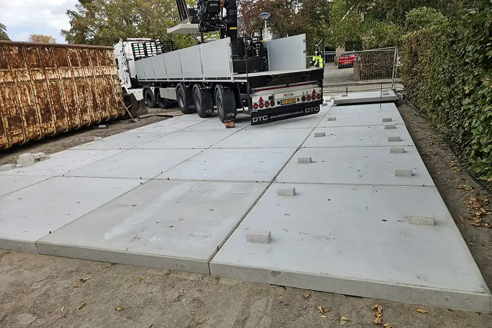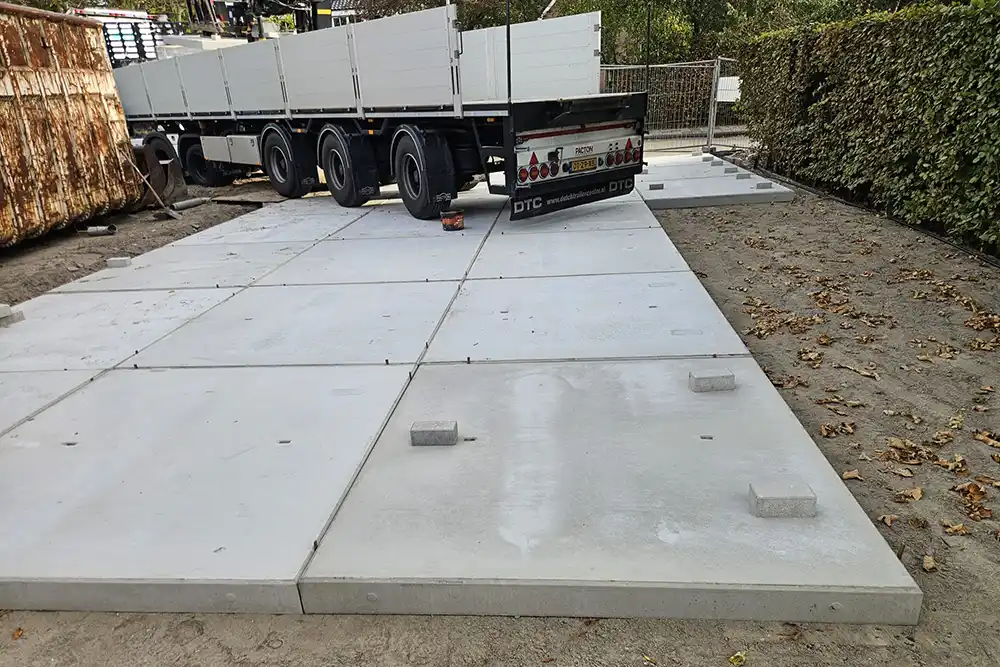 Op een bouwterrein in Oostvoorne hebben wij betonplaten 200 200 14 geleverd. De betonnen platen dienen hier als een tijdelijke verharding en zullen later weer worden weggehaald. Dit type betonplaat is zeer sterk en uitermate geschikt voor permanente en tijdelijke toepassingen.