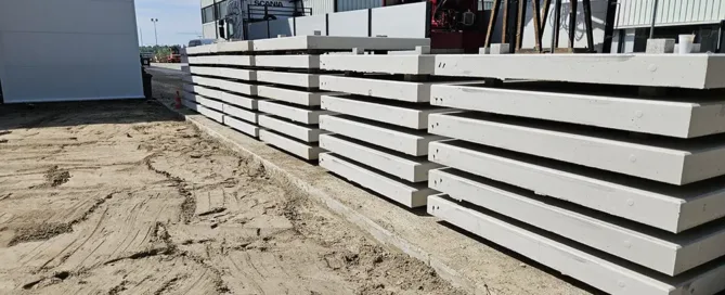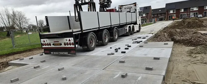 Betonplaten op terrein bij fabriekshal in Papendrecht In Papendrecht hebben wij 100 betonplaten/ stelconplaten geleverd. Deze platen hebben de 'standaard' afmetingen 200x200x16 cm, zijn glad afgewerkt en zijn voorzien van een dubbele wapening. De ... Lees verder>