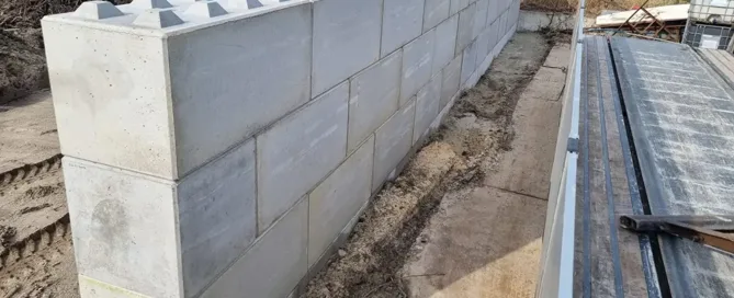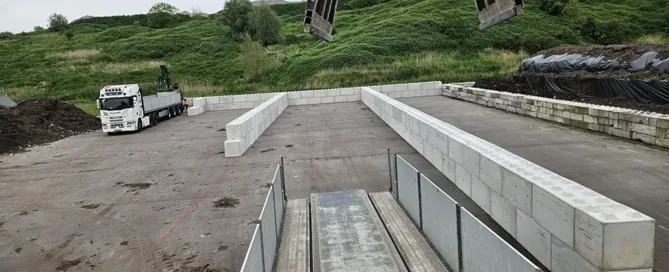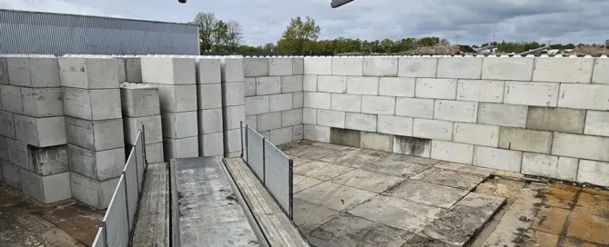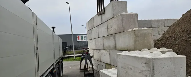 Betonplaten op terrein bij fabriekshal